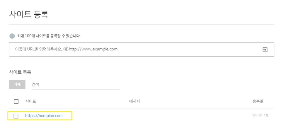 사이트 등록 란에