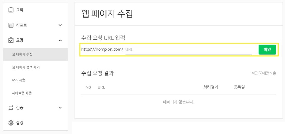 ‘요청 > 웹 페이지 수집’은
